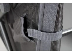 Een zeer stabiel en stevig kookeiland. Zeer eenvoudig op te zetten door een uniek systeem voor het in- en uitklappen van deze kast! Deze kook-/legkast beschikt over een grijs oplegblad van melamine. Waardoor het hittebestendig en watervast is. De aluminium behuizing is stijlvol zwart. De hoes is gemaakt van extra stevig 400 denier polyester met daarin 4 handige legplanken, aan de zijkant 4 vakken en een mesh raam aan de achterkant. De verstelbare poten met stabilisatoren zijn afzonderlijk af te stellen zodat de legkast op iedere ondergrond stabiel staat. De kast wordt geleverd in een draagtas.