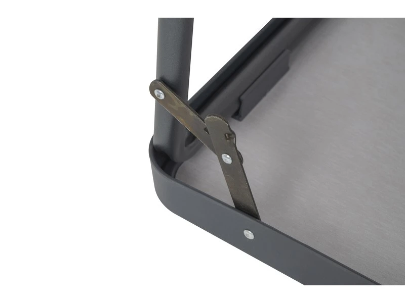 Een lichtgewicht en zeer stabiele vierkantte tafel. Deze campingtafel is voorzien van een hittebestendig en watervast tafelblad en een aluminium frame met stijlvolle grijze poten. De tafel is zeer geschikt als bijzettafel. De campingtafel is eenvoudig en compact te vervoeren.