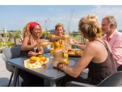 Een tuin-tafel met een uniek onderstel en blad? Kies dan voor de Sophie element HPL. Doordat dit onderstel is gemaakt van het oersterke materiaal aluminium is deze tafel erg geschikt voor buitenshuis. Het blad is van het materiaal HPL, watervast, kleurecht en stootvast. Een zeer duurzame tuintafel.
