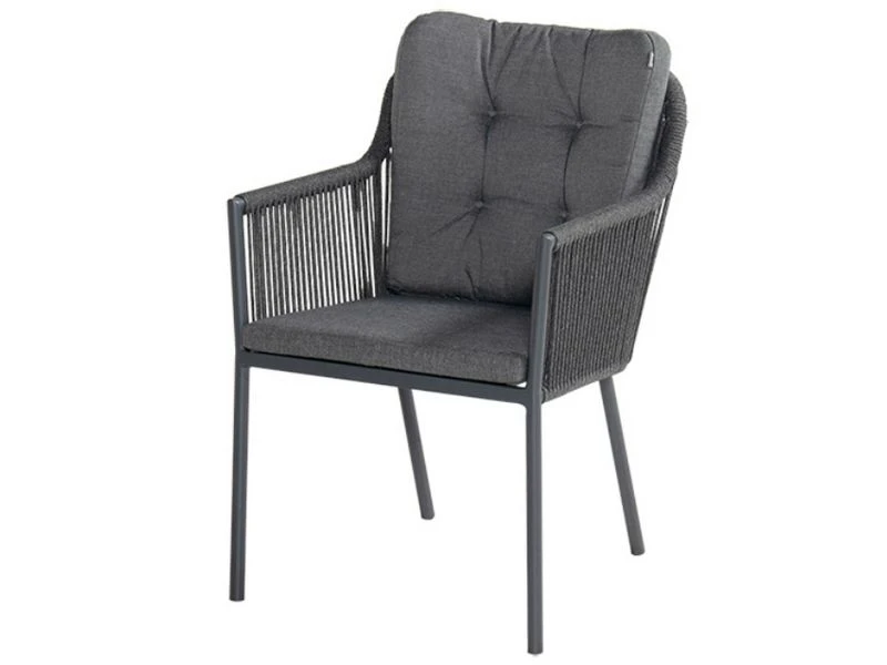 Deze Cairo diningstoel is afgewerkt met het materiaal rope. Dit geeft een speels en modern effect. Daarnaast zijn deze materialen bestand tegen uiteenlopende weersinvloeden. Deze stoel is goed te combineren met vele tafels zodat je jouw eigen eethoek kunt creëren.