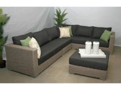Het gebruik van eersteklas materialen (kunststof vlechtwerkdraad), een stevige en weersbestendige constructie (aluminium frame) en een eigentijds design, geven de Te Velde Santander hoek lounge set een modern uiterlijk en zorgen ervoor dat de set het hele jaar door buiten kan blijven staan. De strakke lijnen en de dikke zikussens maken deze loungeset een eyecatcher in iedere tuin.